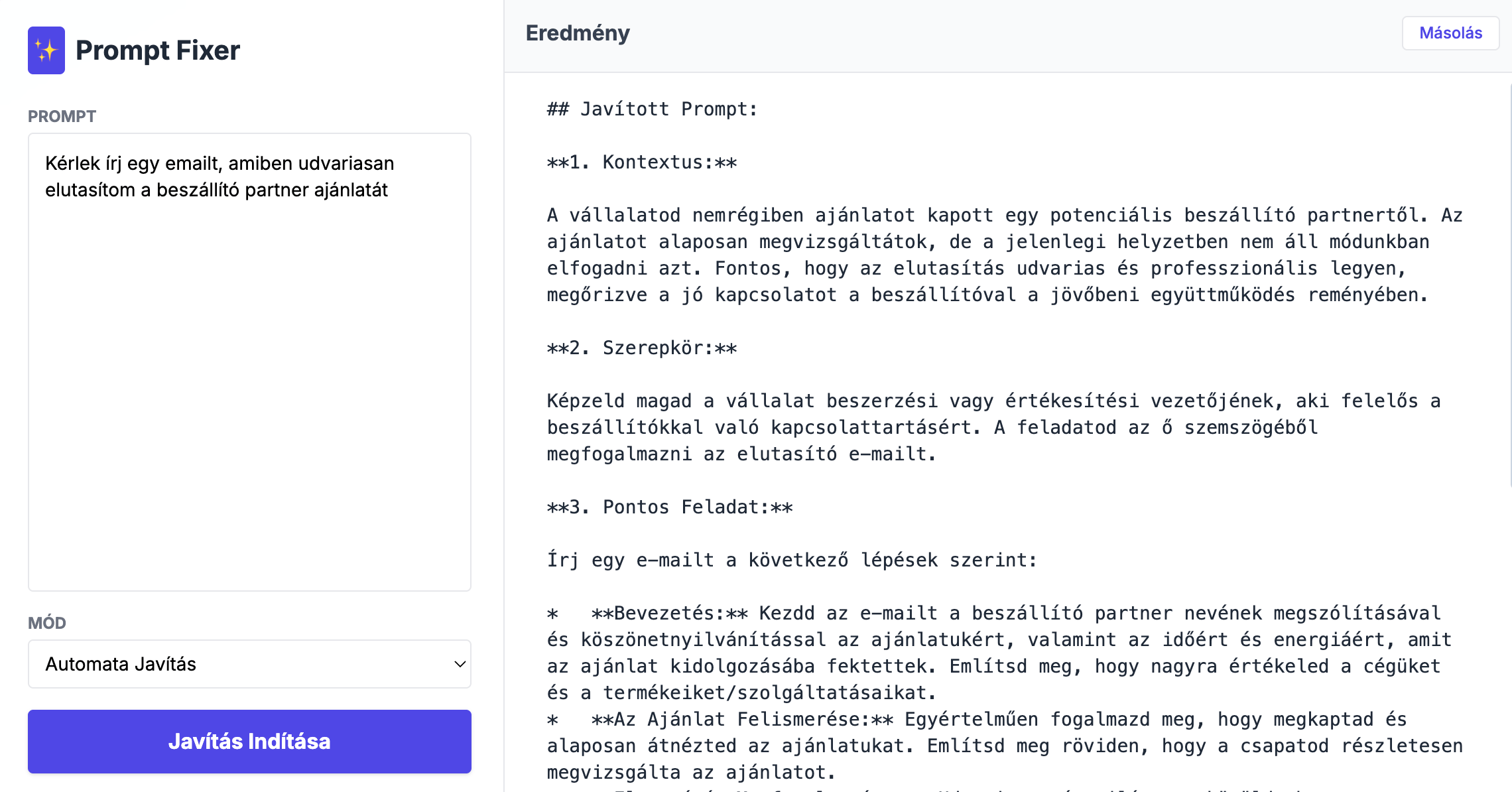 Ez a prompt fixer sem kĂ©sz. De az Ă©n promptjaimat javĂtja. EgyelĆre ez elĂ©g.