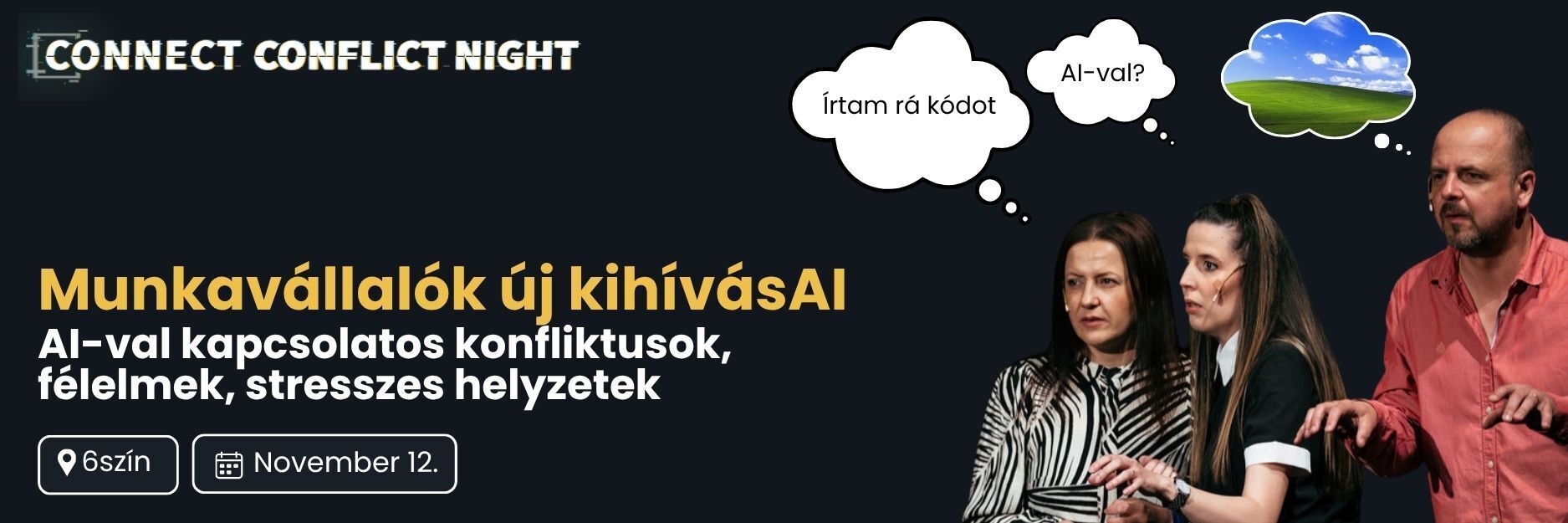 Humoros és tanulságos színházi est keretében az AI-val kapcsolatos konfliktusokat, stresszes helyzeteket állítunk színpadra improvizációs színészek segítségével és szakértő vendégekkel kísérletet teszünk a helyzetek megoldására.