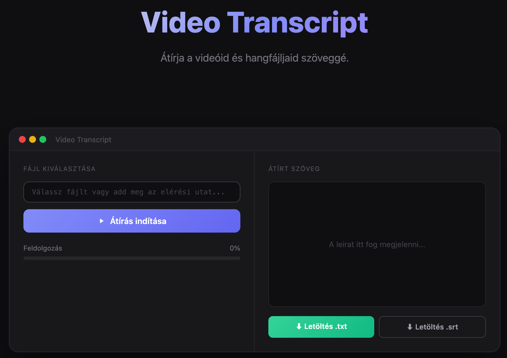 MegĂ©pĂtem magamnak. Webes felĂŒlet, nincs regisztrĂĄciĂł, nincs limit. Bedobod a fĂĄjlt, kapsz szöveget.